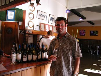 Joe wine tasting at Clearview Estate