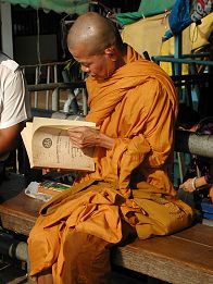 Monk waiting for ferry - Bangkok