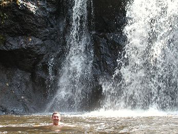 Swimming under the waterfall