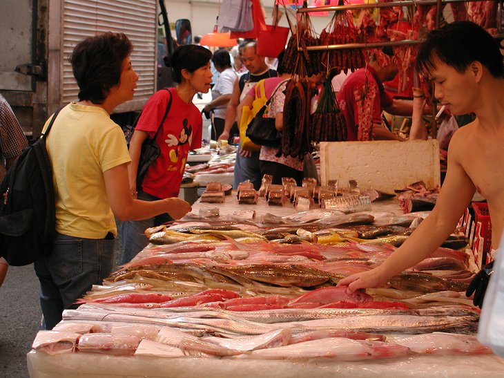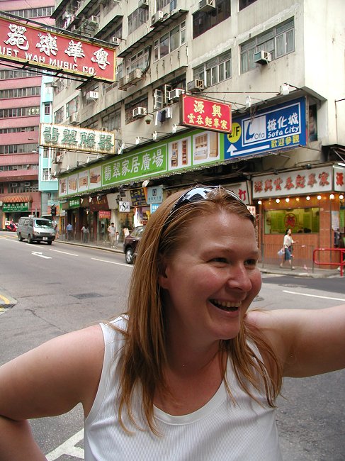 Hong Kong - Page 2 of 3 - Monday 9th to Wednesday 11th October 2006 Above: Ali tries to flag down a bus Above: Bowrington Road market